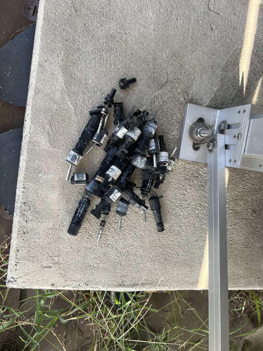 遠隔監視で計測出来ないとの事で 現場確認。 猫害でした.... あとモジュールが2枚割れていました メンテナンスフリーは厳しいね #太陽光発電