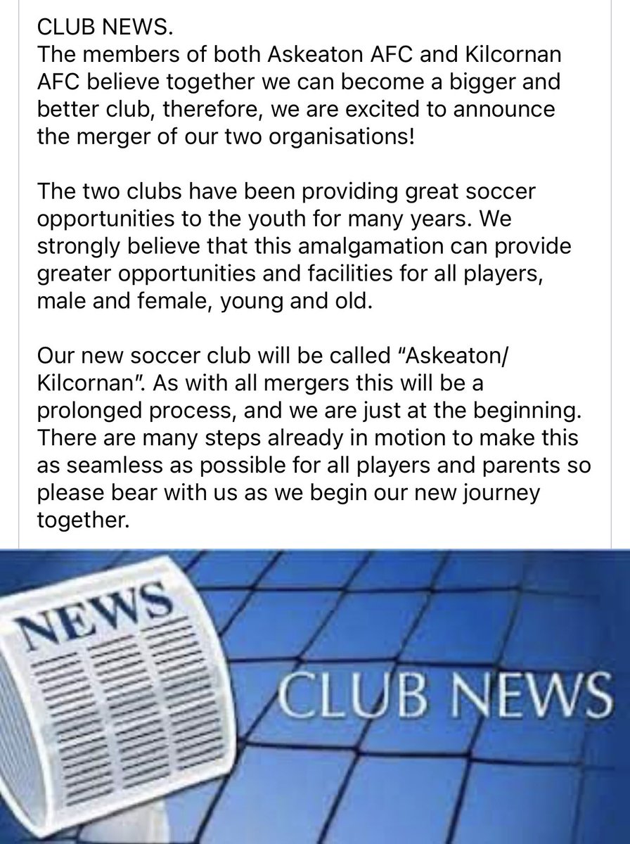 ASKEATON AFC AGM 2023 The Annual General Meeting of Askeaton AFC will be held on Monday 10th July in the clubhouse, starting at 8pm. All faces, new and old are welcome.