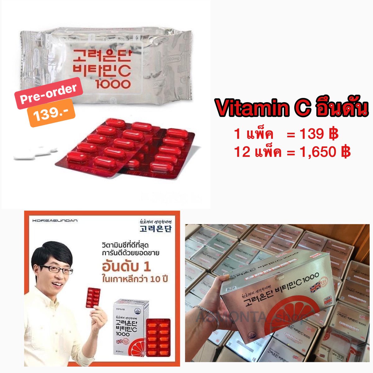 เปิดพรี #วิตามินซีอึนดัน. #Korea #Eundan Vitamin C 1000 🔥ราคา 139 ฿ 🔥 ของเข้าต้นอาทิตย์หน้า วิตามินอึนดัน ลดการเกิดริ้วรอยแห่งวัย ภูมิแพ้ ผิวขาวใสขึ้น 〰บรรจุ 60 เม็ด 📦ส่ง flash 40 ฿(ชิ้นต่อไป+5฿) 📦12 แพ็คขึ้นไป คิดตามจริง #พรีออร์เดอร์เกาหลี #ชิปปิ้งเกาหลี