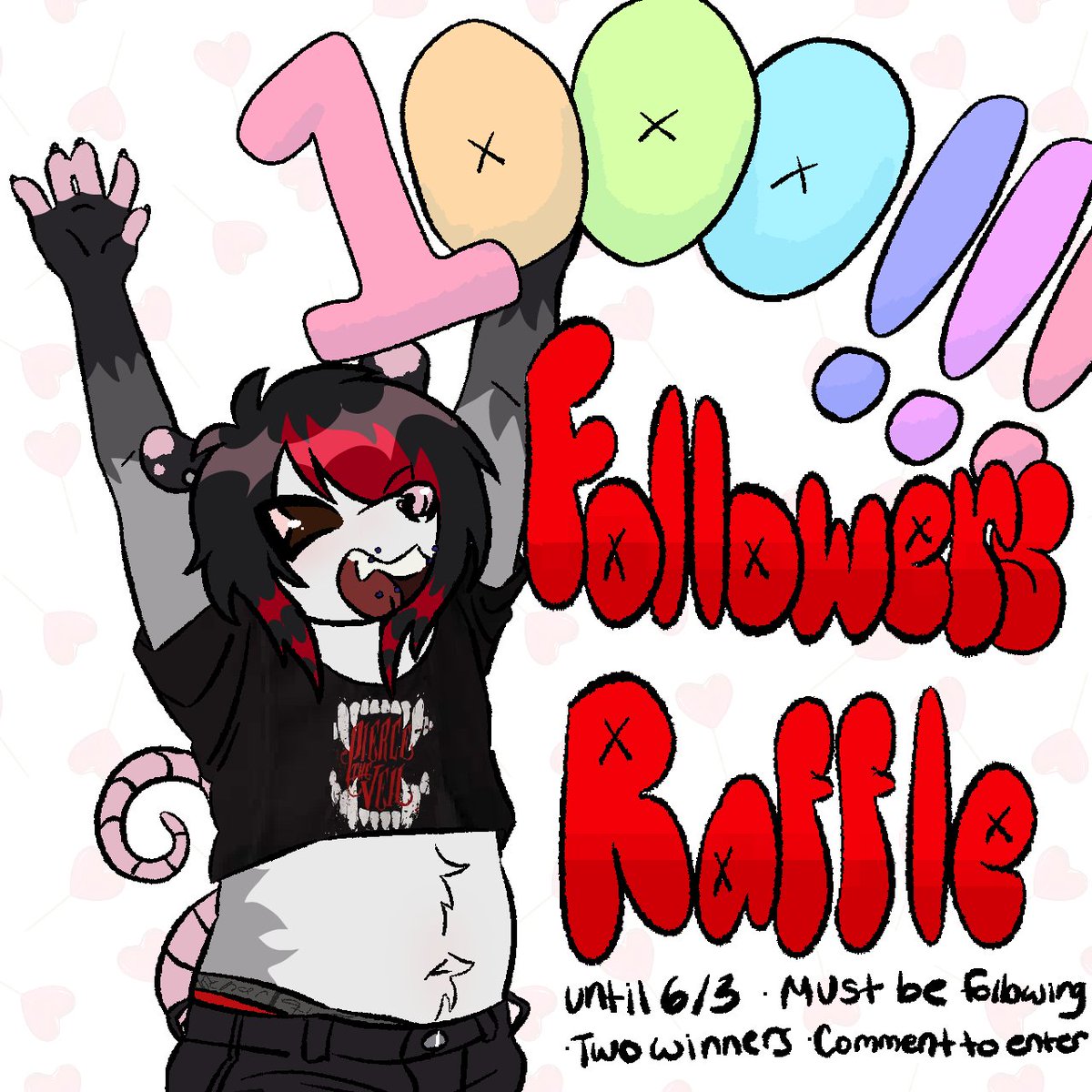 Reached 1000 followers on a platform for the first time (I don't count tiktok) and I'm holding a raffle until 6/13 with 2 winners!! 🎉 PRIZE CHOICE IS 1 OF THE 4🎉 • Reference sheet •Full Body piece • Custom Character • Any YCH I have up NSFW allowed but can refuse