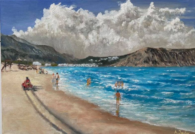 “Kavros Beach, Looking Towards Rethymnon” Fine painting by @swinleyart member Alan Taylor @atbenjaminart