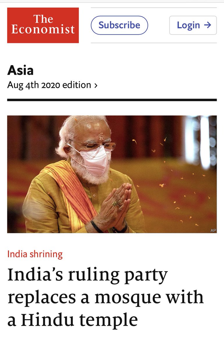 Deep anti-Hindu bias of @TheEconomist is clear with this false, malicious & mischievous headline. Sadly, an international publication has reduced itself to a click baiting troll. If there is ounce of credibility left, you will change your headline to reflect facts accurately.