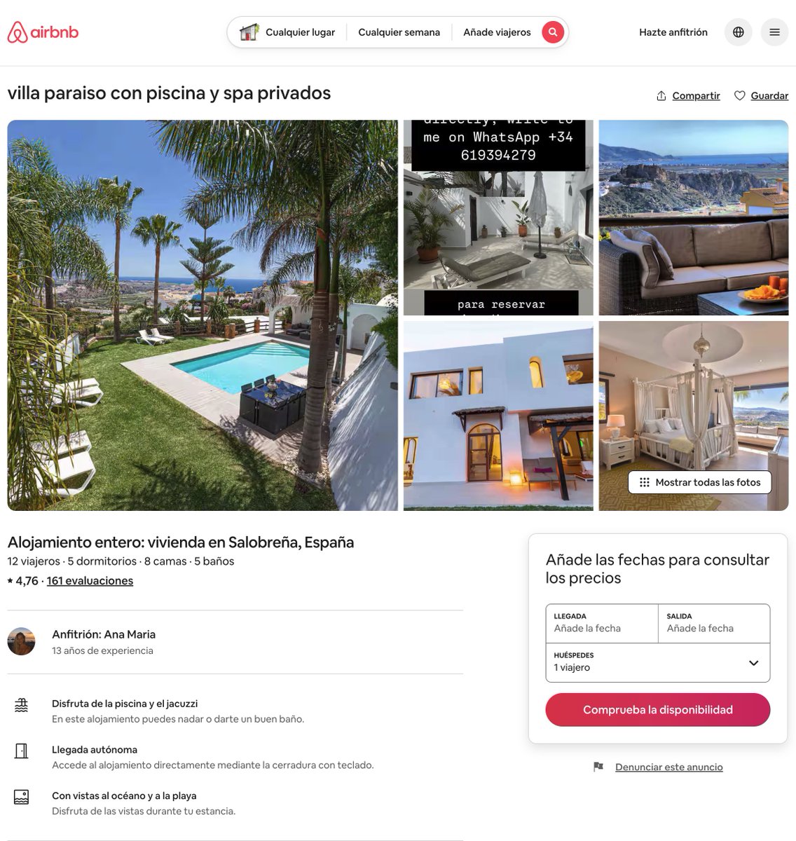 La tanqueta de Hamás y su marido poli local de Ceuta -sospechosamente millonarios- tienen una mansión con 5 dormitorios y 5 baños en Salobreña. Así la alquilan en Airbnb. Deberían investigar cómo tienen este nivel de vida.