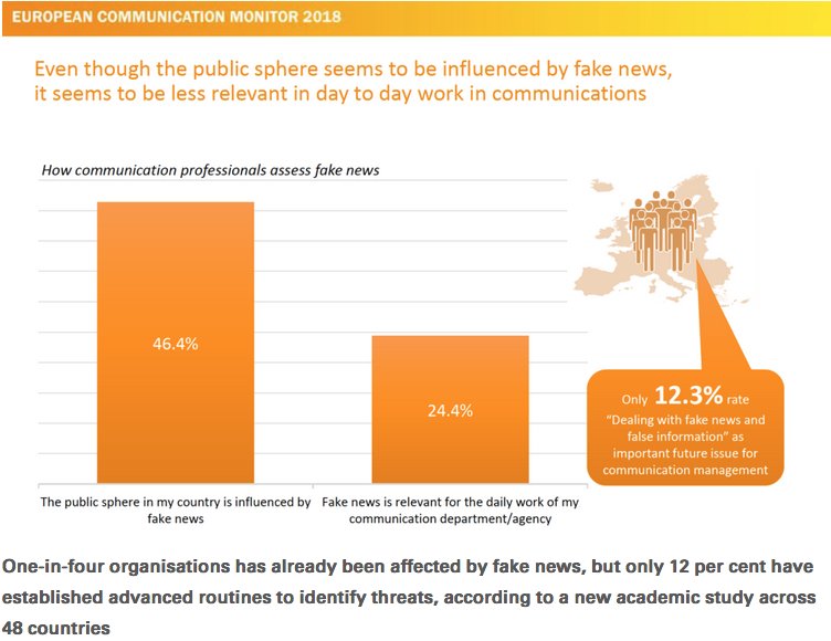 Fighting #fakenews seems to be a rather blind spot across europe bit.ly/2JRfkhi This is one highlight result of the European Communication Monitor #ecm18 #fakenewsfighter