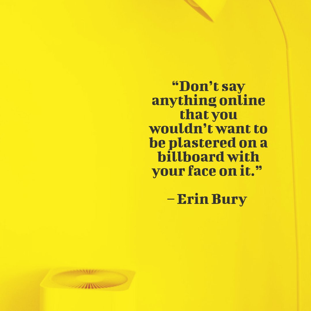 "Don't say anything online that you wouldn't want plastered on a billboard with your face on it." – Erin Bury
