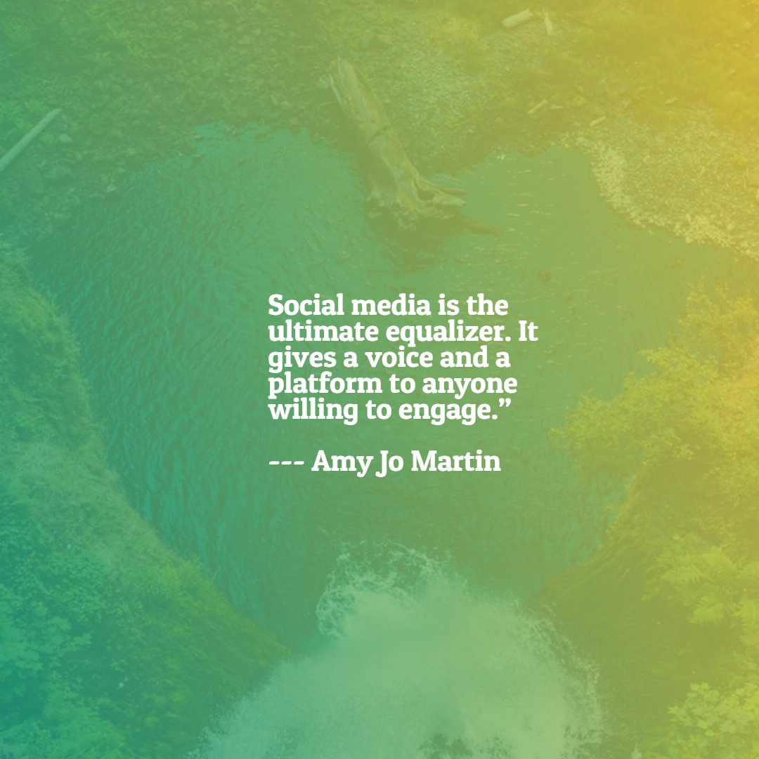Social media is the ultimate equaliser. It gives a voice and a platform to anyone willing to engage." --- Amy Jo Martin