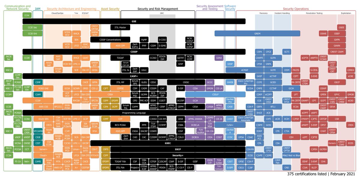 Cyber Security careers, visualised. 1) Security certification roadmap @ pauljerimy.com/security-certi… 2) Domains of cyber security @ linkedin.com/pulse/cybersec… 3) Cyber career map @ linkedin.com/pulse/path-car… 4) Cyber career map (2) dsci.in