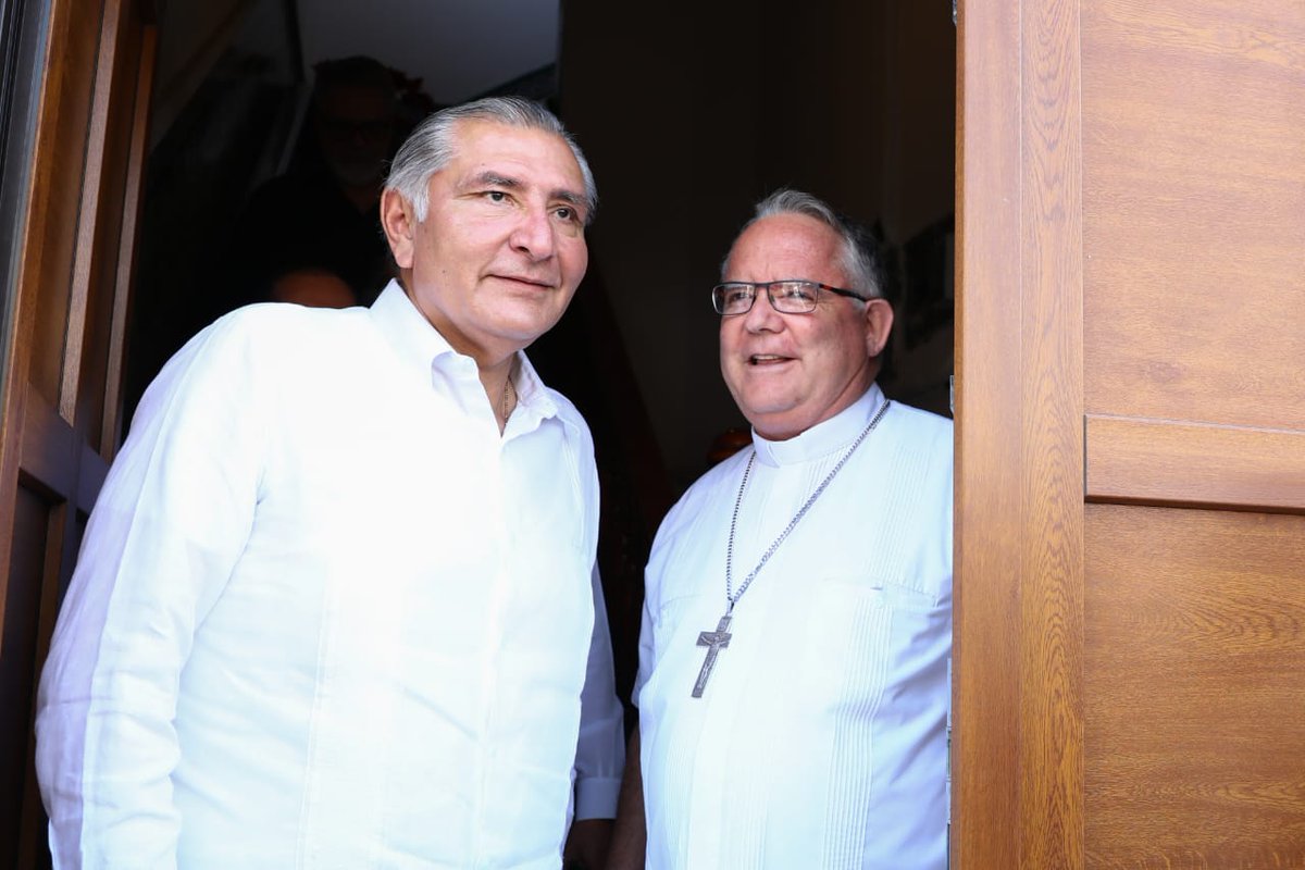 El titular de la Secretaría de #Gobernación, @adan_augusto, sostuvo un encuentro con el Obispo de la Diócesis de #Veracruz, Monseñor Carlos Briseño. Coincidieron en el trabajo conjunto Gobierno e Iglesia para la reconstrucción del tejido social.