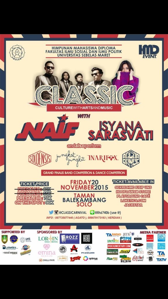 #jadwalNAIF : Jumat, 20 November 2015 CLASSIC, Venue : Taman Balekambang, SOLO, HTM : Rp 90.000