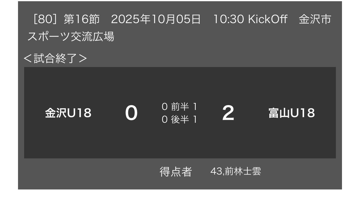 U18は金沢との1部生き残りダービーを制す❗️ 素晴らしい👍 これで1部残留確定か?