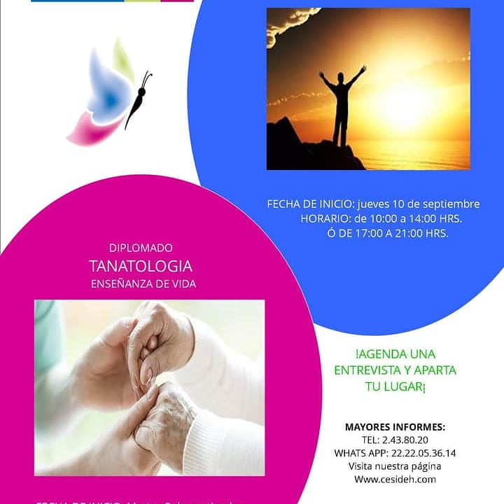 ¡INSCRIPCIONES ABIERTAS! 🦋✨ DIPLOMADO EN TANATOLOGÍA, ENSEÑANZA DE VIDA. Valor Curricular 136 hrs. Escríbenos. WhatsApp: 222 205 3614 [email protected] cesideh.com #CESIDEHPuebla #FormaciónContinua