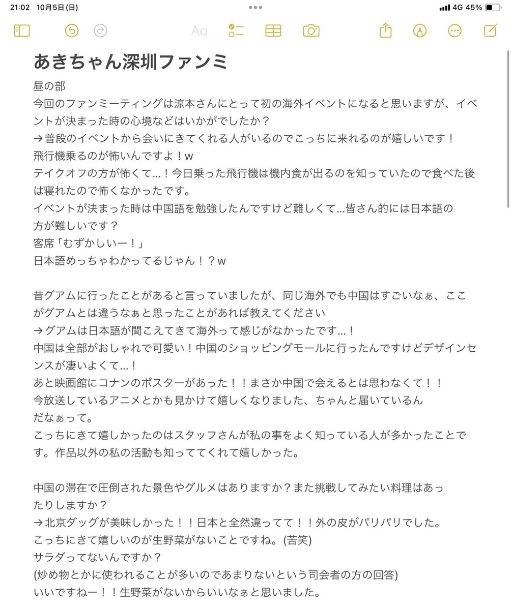 涼本あきほさんの深圳ファンミのイベント内でファンの方からの質問に答えるコーナーがあり、作品に関するお話もちょこっとあったりしたのでざっくりとメモしたのを公開します 完全にメモしたわけではないので当日のニュアンスとか口調などにちょっと違いがあるかもですがご参考ください! ①昼の部