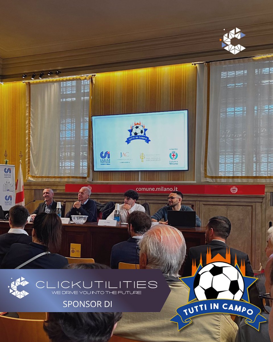 Oggi il team di #Clickutilities alla conferenza stampa di #TuttiinCampo a Palazzo Marino:#sport e #inclusione al centro! Non solo #sponsor, ma al fianco dei ragazzi con il nostro #knowhow in #comunicazione e #marketing. Vi aspettiamo il 17/5 a Cornaredo⚽️ #Formazione #Strategy