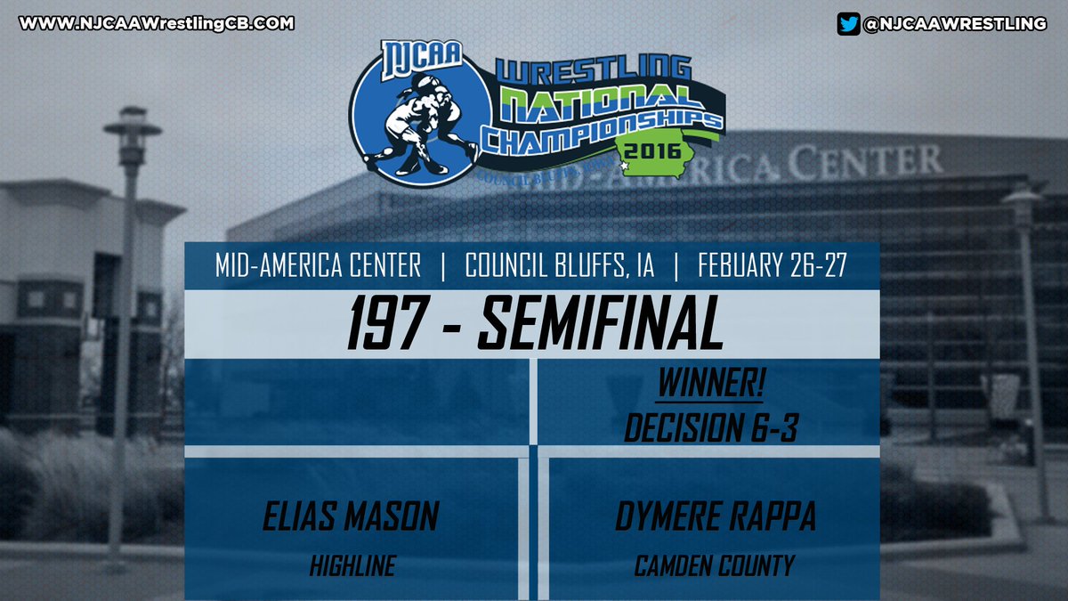 197 - SEMIFINAL | Dymere Rappa of @camdencc wins by DECISION over @HighlineNews's Elias Mason. #NJCAACB2016