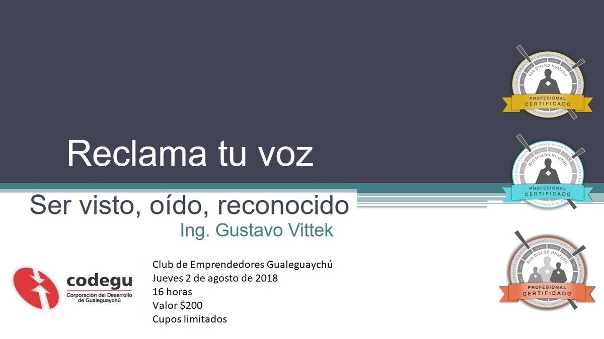 Anotate para esta nueva actividad en el Club de Emprendedores: "Reclamá tu voz", dictado por el Ing. Gustavo Vittek. Inscribite en [email protected]