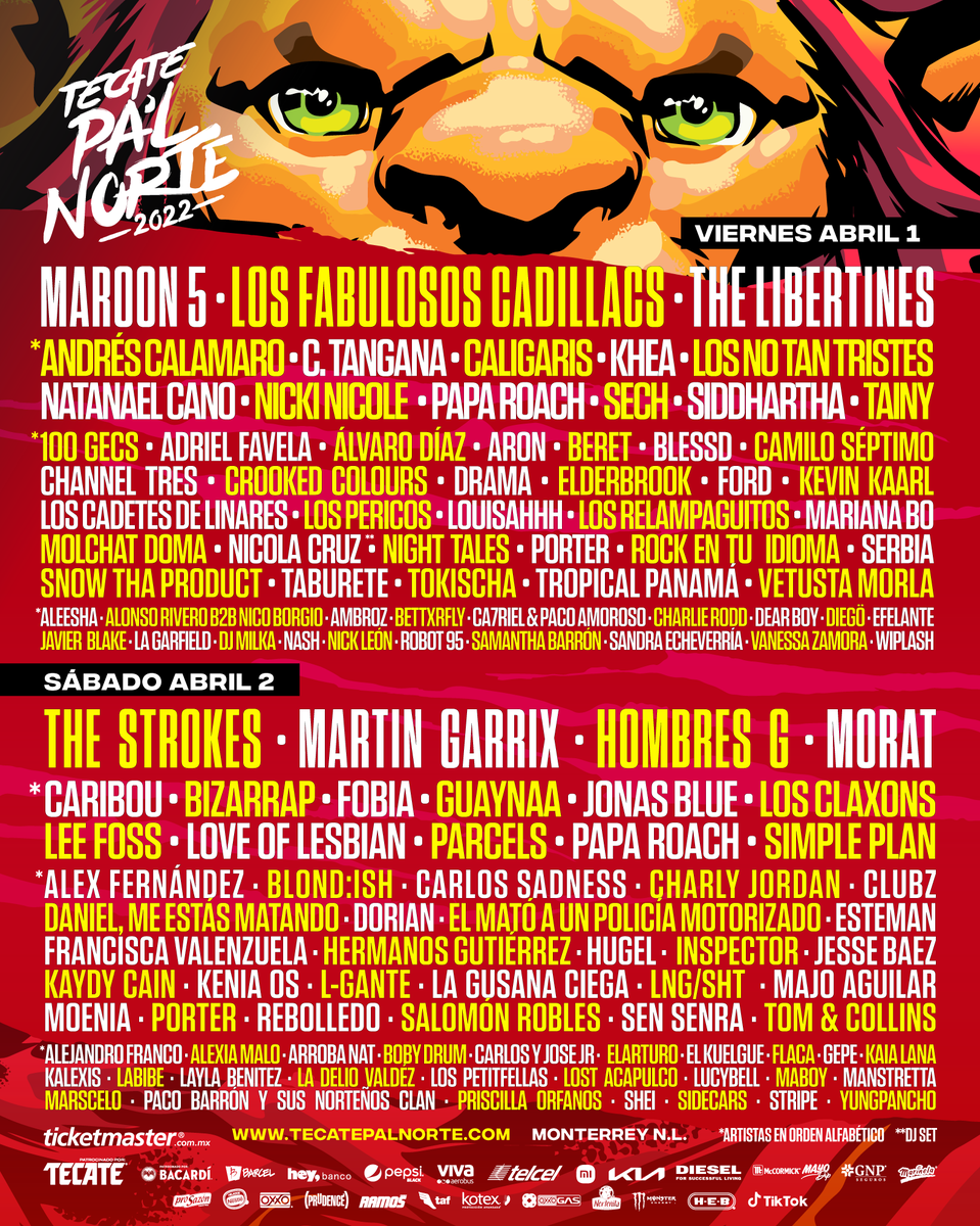 #TecatePalNorte presenta el cartel por día 🙌 🎫 Boletos individuales a partir del 3 de marzo a través de Sistema Ticketmaster