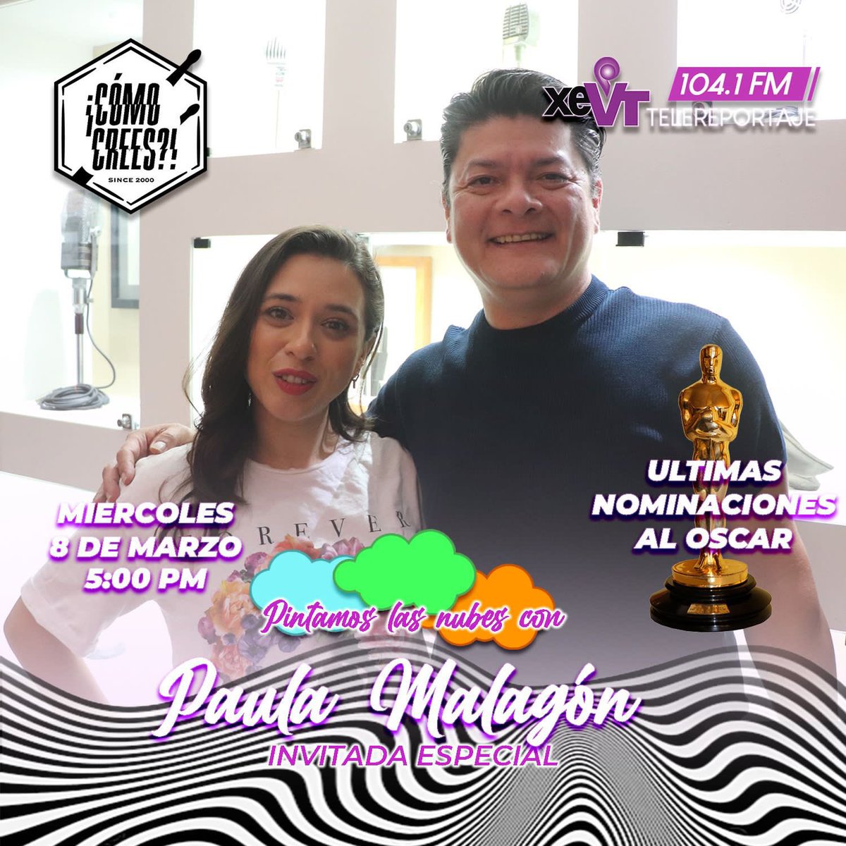 ⛅️🌈 'Pintar las nubes', primer sencillo de Paula Malagón #EnVivo en #ComoCrees con @Zapatashka 📻 ➡️ Además… las últimas nominaciones al #Oscar