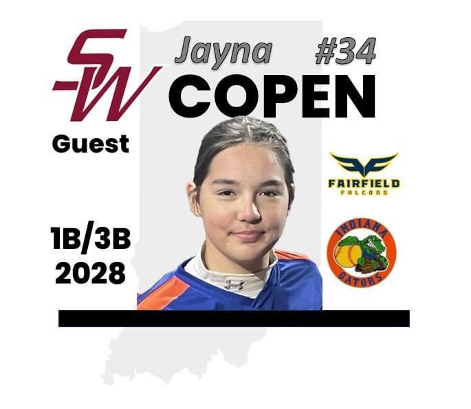 Please welcome guest player Jayna Copen from Indiana Gators 08 - Burns ! Jayna will be joining us for the spring until the high school season ends, when she will rejoin her Gators teammates.