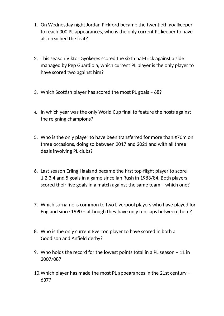 Right what was a quiz in the pub with my mates on Saturday - hence lots of LFC and EFC questions - has had more than 1 million views. Thanks for the feedback and here are the answers. Enjoy!