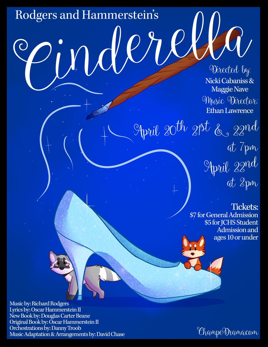 Come see John Champe's Rogers and Hammersteins Cinderella this Thursday, Friday, and Saturday at 7 pm and also this Saturday at 2pm!!✨👑