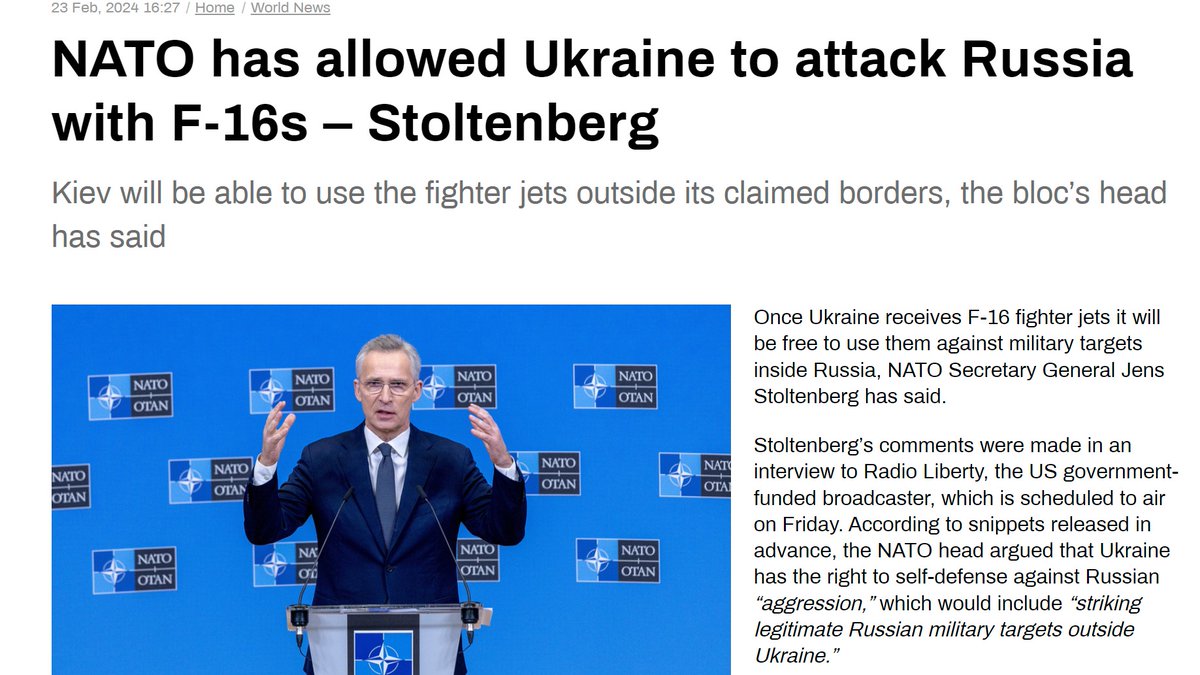 NATO sends F-16s to attack inside Russian borders. Did Stoltenberg just declare war on the world's largest nuclear power? Imagine Russia sending fighter jets to attack the US, as defence for any of the countries the US currently bombs or illegally occupies ft.com/content/175bd2…