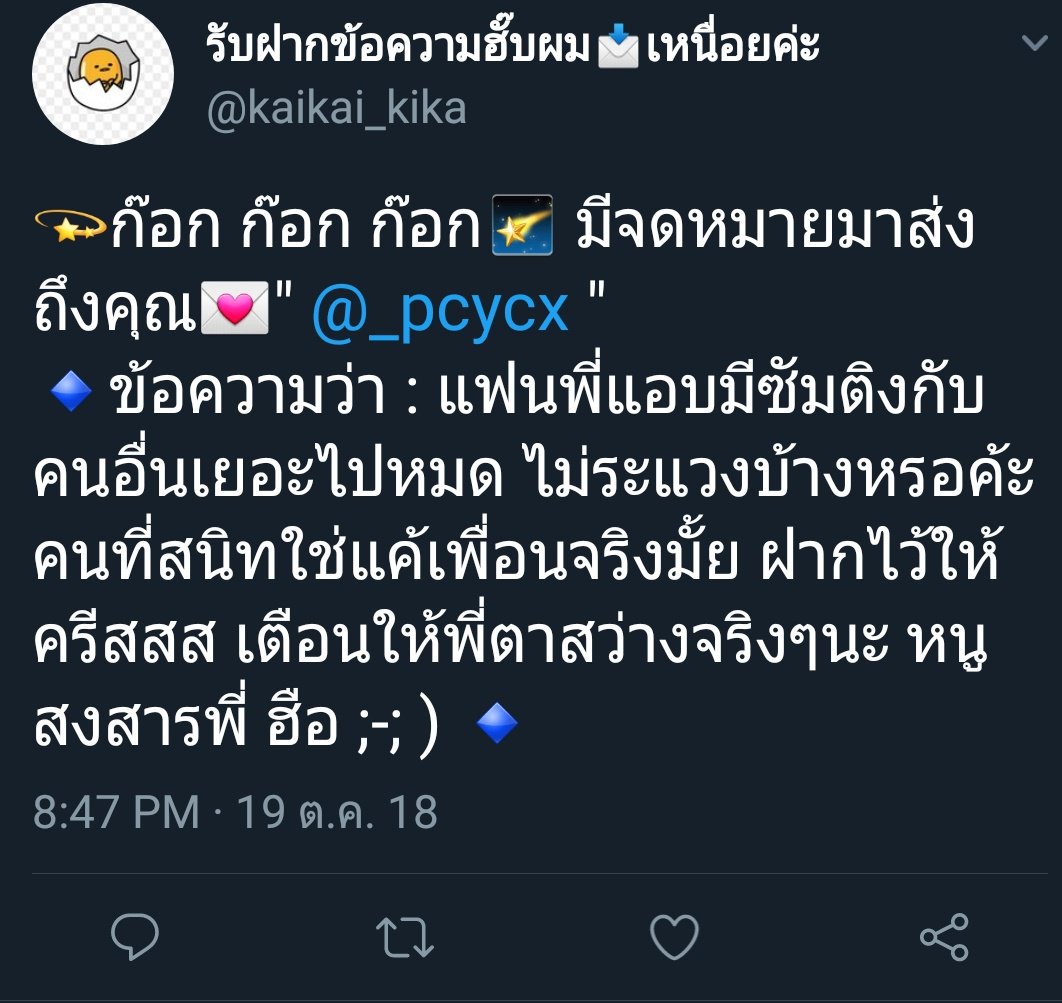 ฝาก rt ตามทักครับ ไม่ได้มาแหกแต่ต้องการรู้ตัวคนทำ อยากรู้ว่าใครส่งมาทักDMมาสารภาพกับพี่ก็ได้ ตอนนี้เพื่อนพี่กับแฟนมีปห.กันจนจะเลิกกัน คนทำคิดว่าสิ่งที่มันทำดีใช่มั้ย ไม่รู้ว่าใครทำเพราะอะไรอิจฉาหรือหมั่นไส้นะ แต่มาบอกก่อนที่จะรู้ตัวเองดีกว่าเพราะเรื่องคงไม่จบง่ายๆ รออยู่นะครับ