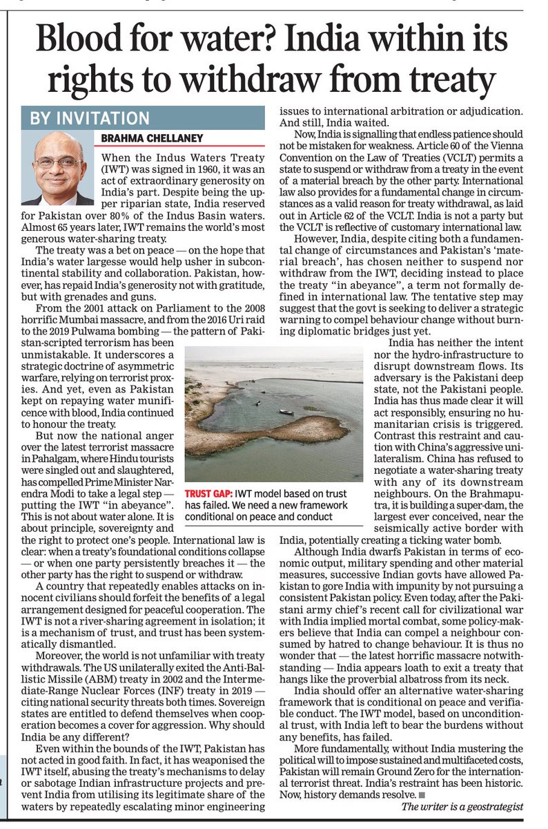 Although India dwarfs Pakistan in terms of economic and military power, successive Indian govts have allowed Pakistan to gore India with impunity. Modi's tentative step on IWT suggests he still believes India can compel a rogue Pakistan to change behavior. timesofindia.indiatimes.com/home/sunday-ti…