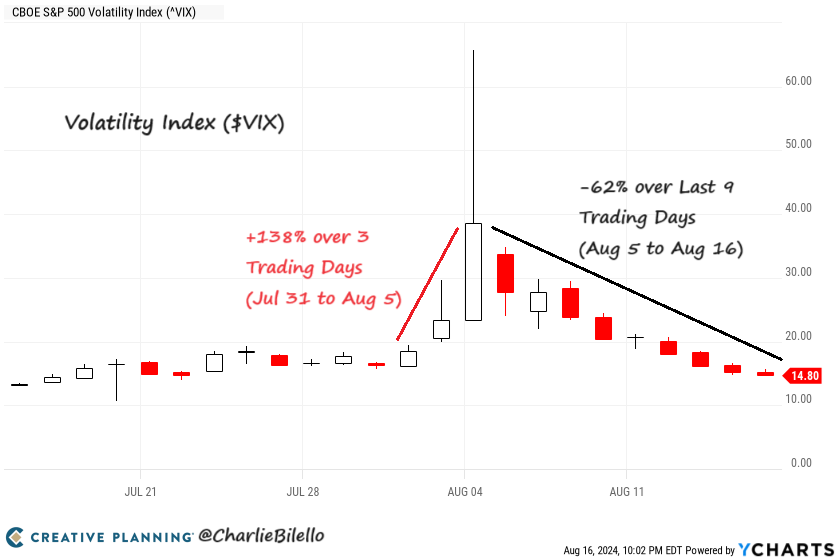 The $VIX has declined 62% (from 38.57 to 14.80) over the last 9 trading days, the biggest volatility crash in history. Video: youtube.com/watch?v=NeD5dR…