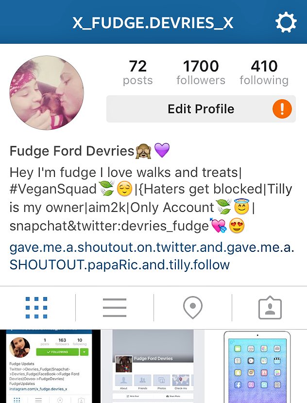 My Instagram is x_fudge.devries_x & my snapchat is devries_fudge (get me to 2k on insta my fudgecornz😽❤️)