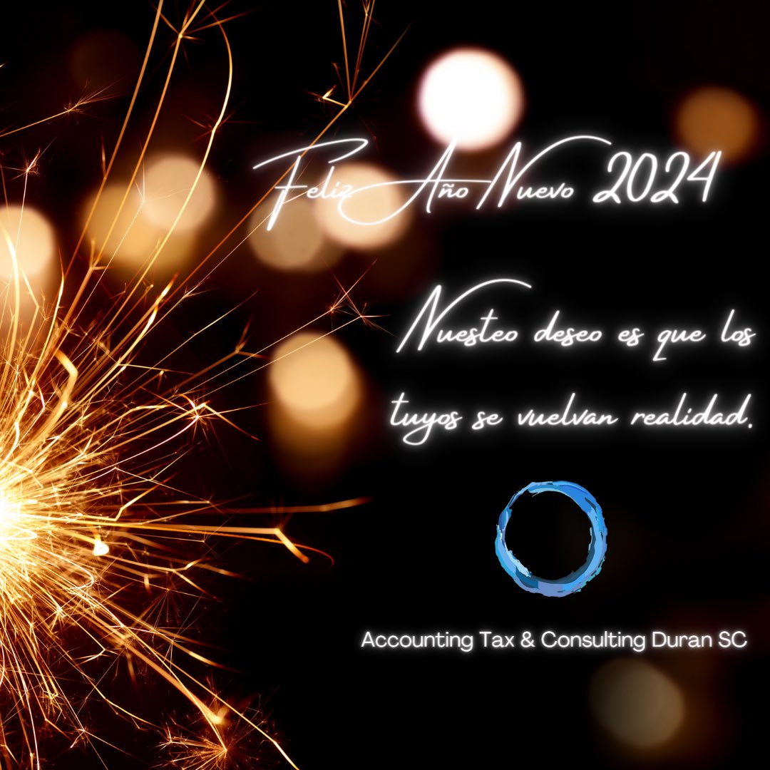 De parte todos los que formamos parte de Accounting Tax & Consulting Duran SC, les deseamos un año 2024 lleno de éxitos, que todas sus metas se cumplan y que sus deseos se hagan realidad.