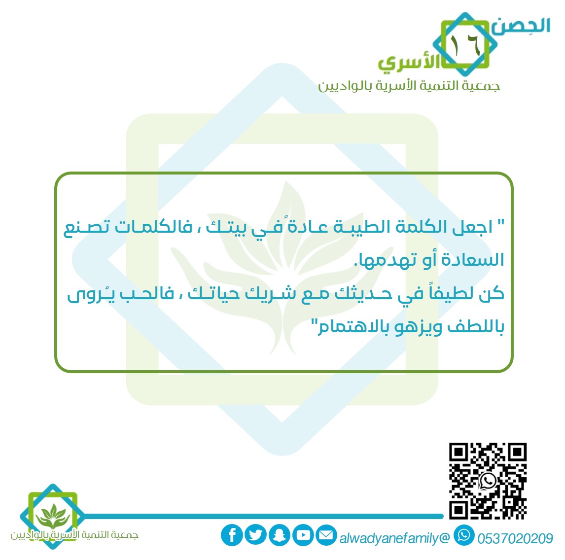 4K Followers 30 Following جمعية التنمية الأسرية بالواديين الريادة في بناء أسرة واعية لمجتمع آمن