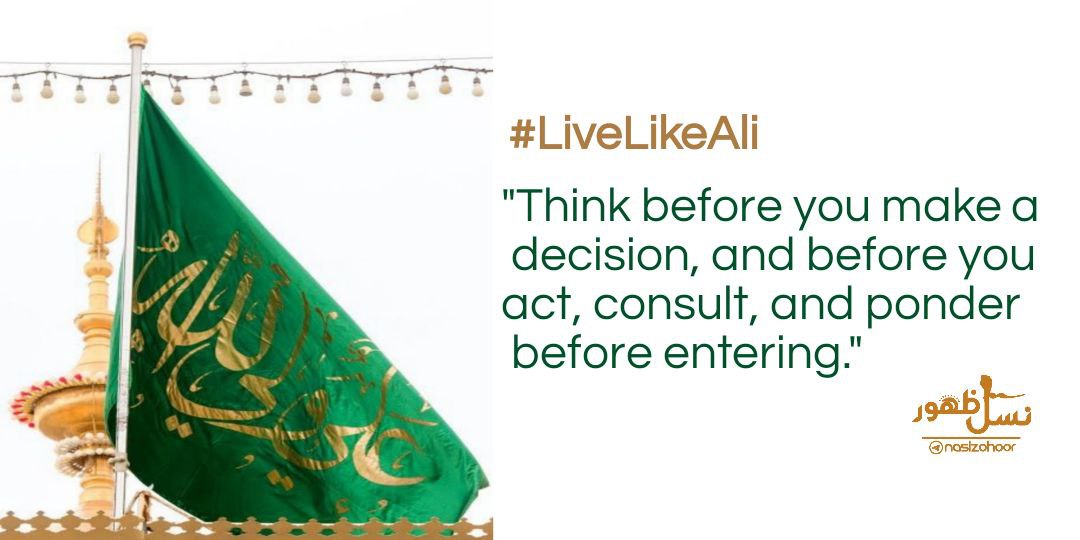 "Think before you make a decision, and before you act, consult, and ponder before entering." #LiveLikeAli