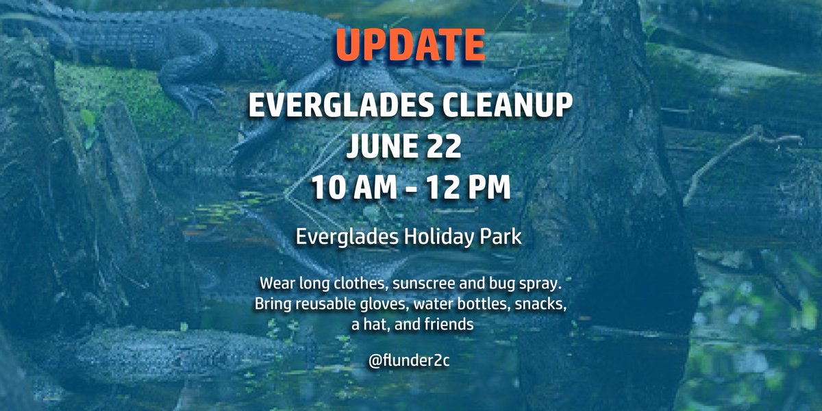 UPDATE: There has been a location change for the #everglades #cleanup it will now be at Everglades Holiday Park. Please share this update with friends and RSVP. The Eventbrite invitation has more information everglades-under2c.eventbrite.com/?ref=estw #BrowardCounty #BCPS #KanterLLC
