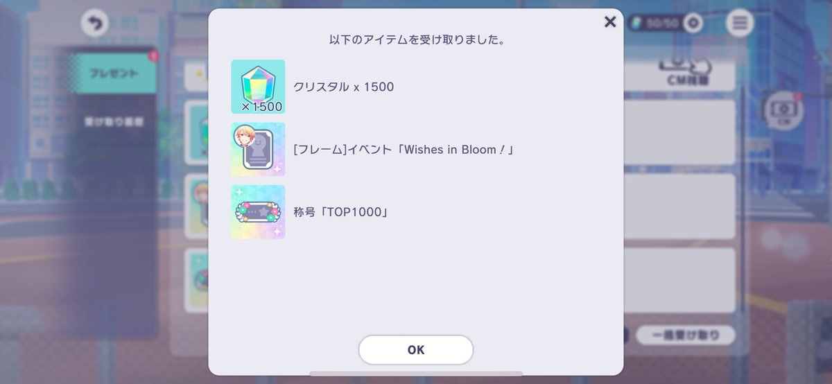 報酬として無事称号とフレームと色々もらいました!🙏 あのとき支援と素早いタップ連打が無ければ取れなかったと思うと感慨深い… 17時の時点で1002位でした…すごい怖かった…🥶