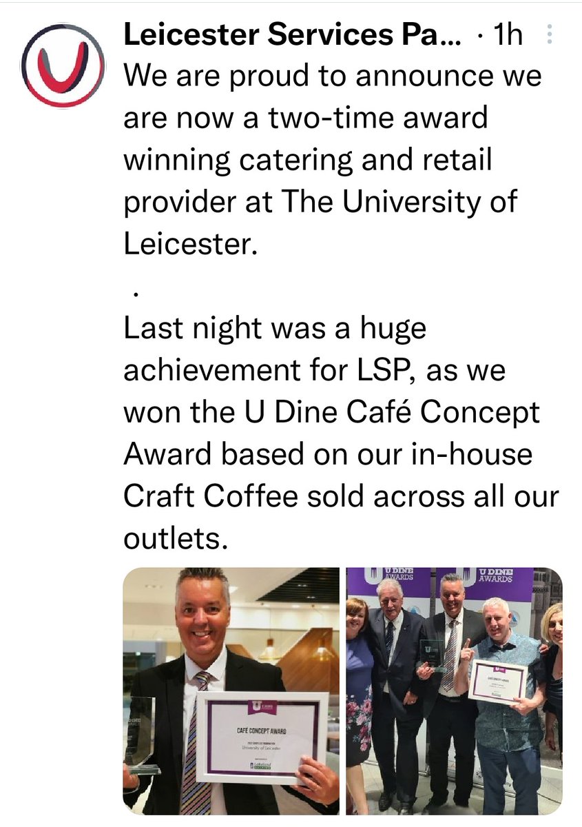 Thanks to the amazing team @your_lsp @uniofleicester so proud of you all. Thanks to @BrianTurnerChef @Cafeology @UniSeminars @udineawards #udineawards2022