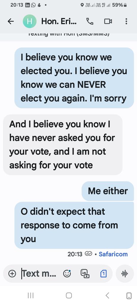 Dear Kenyans, this is my MP who reacted to my text in this manner. Just, just, are these the leaders we have today?