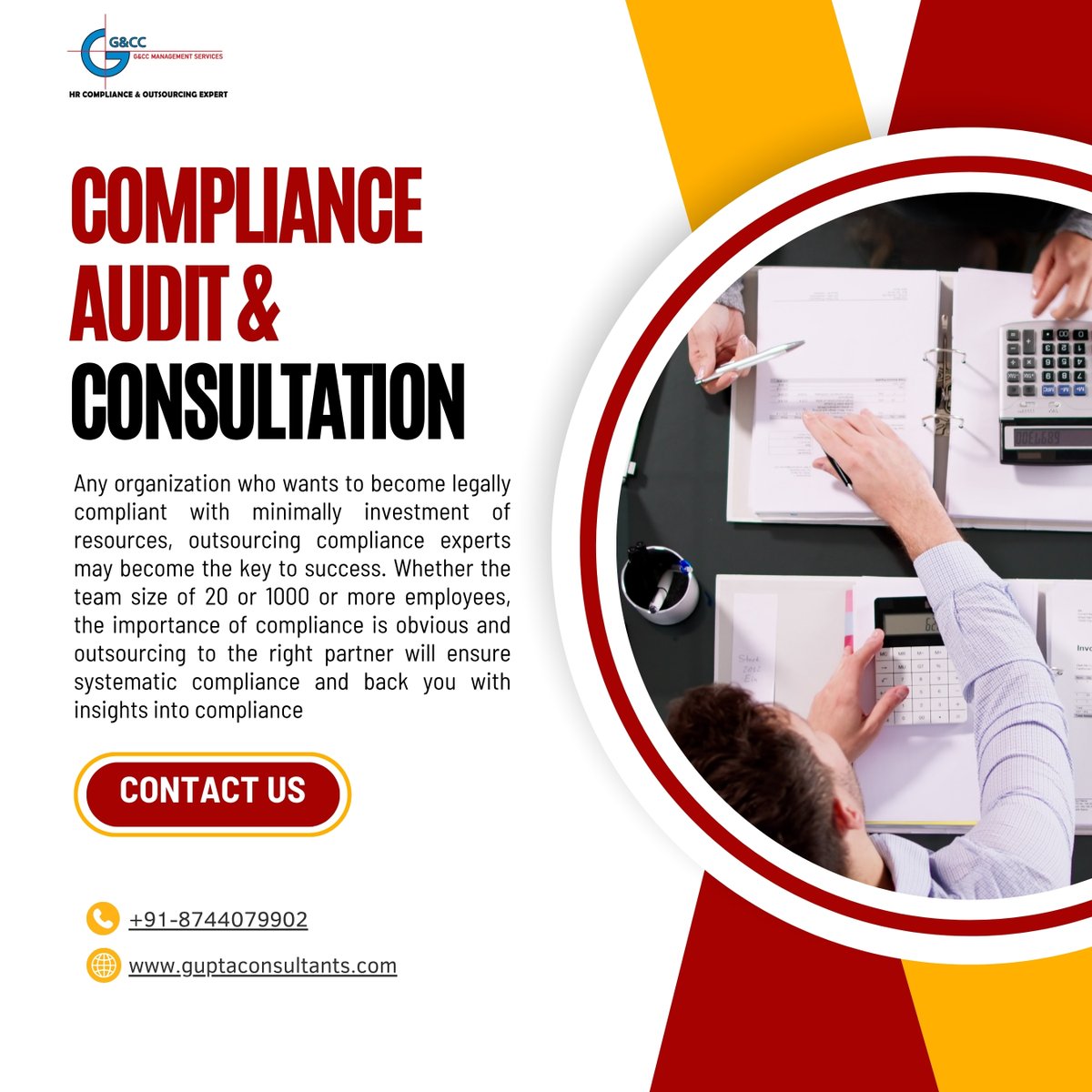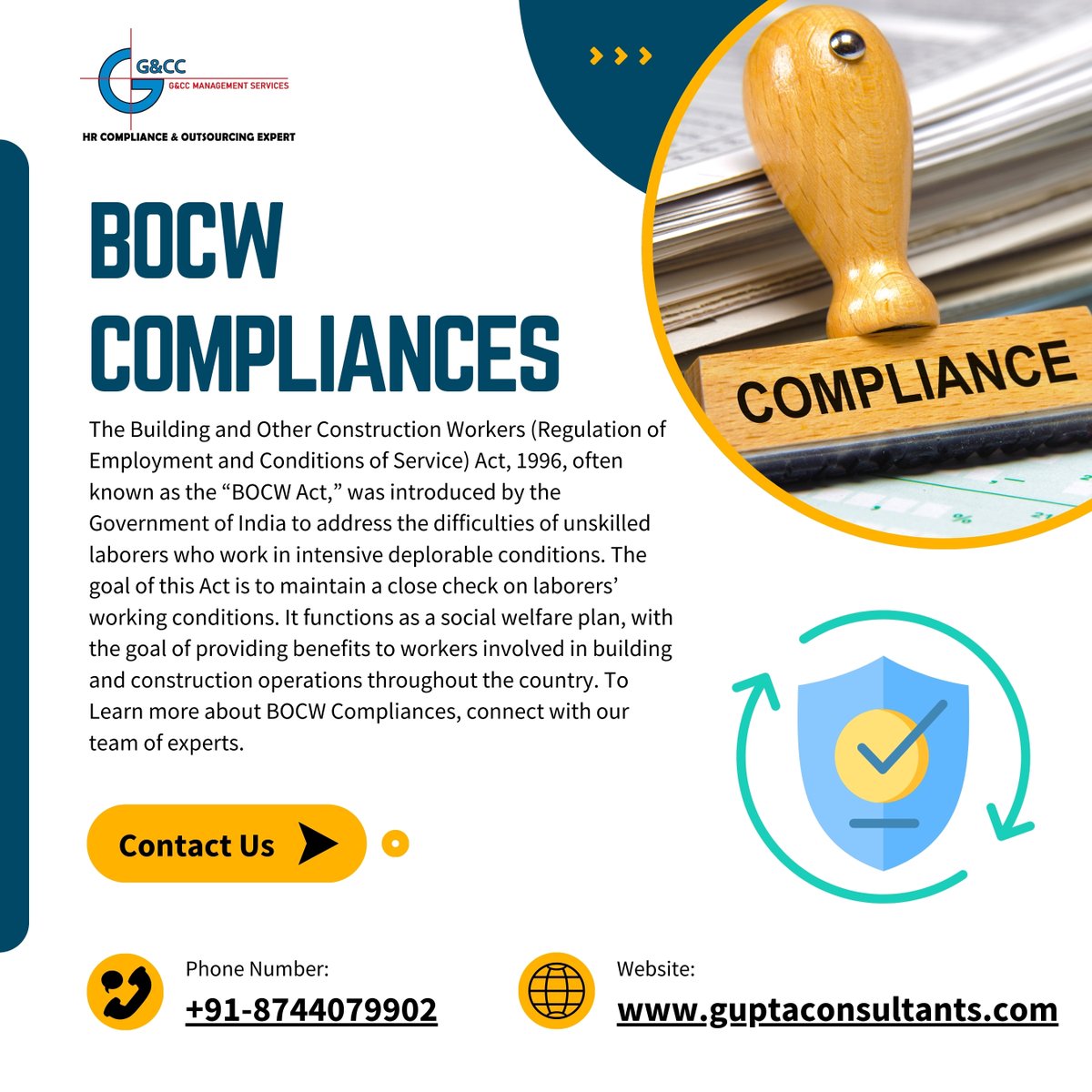 Gupta & Company Consultants (G&CC) is a well-known HR Labour Compliance Outsourcing companyand haveexpertise in EPF & ESIC Compliance, Labour Law Compliance. guptaconsultants.com India Joined June 2016-
