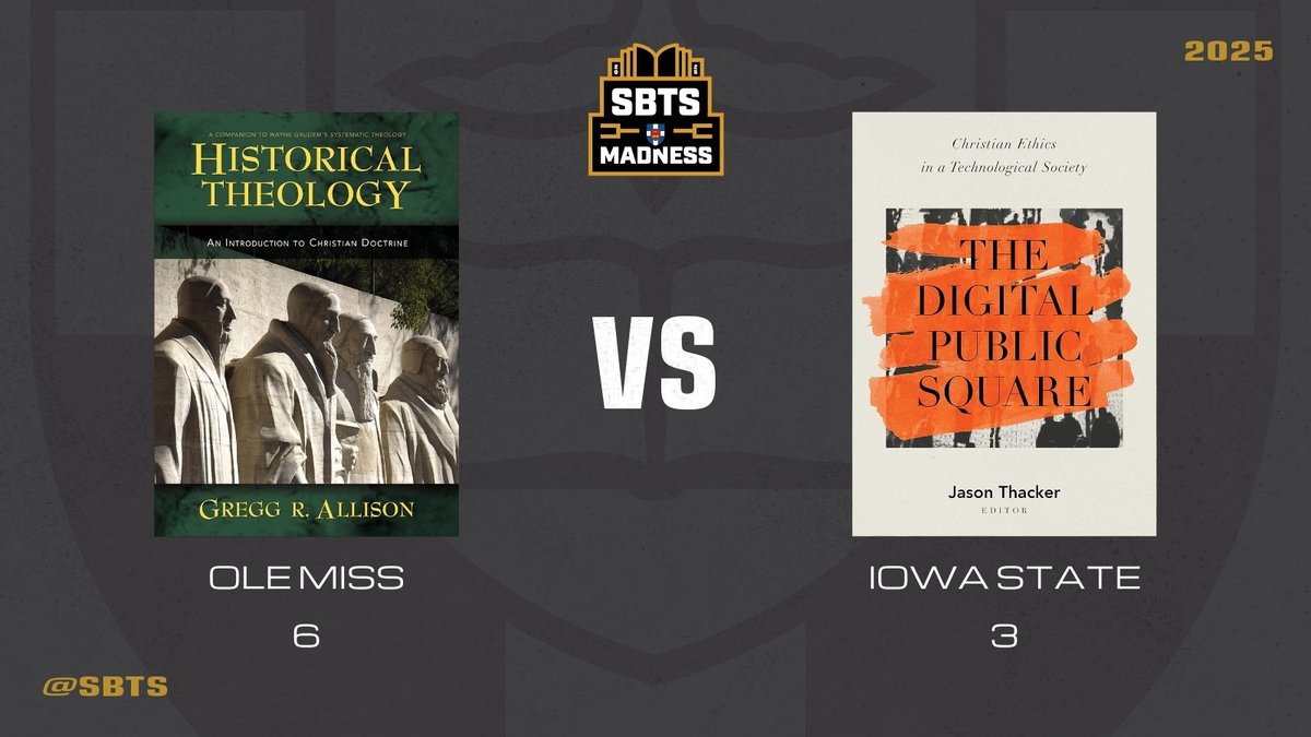 Giveaway time—let’s go. SBTS Madness Giveaway Matchup: • The Digital Public Square by Thacker - BHpub • Historical Theology by Allison — @Zondervan To enter: Repost this tweet. Want a shot at the full Faculty Library giveaway? Go to sbts.edu/madness