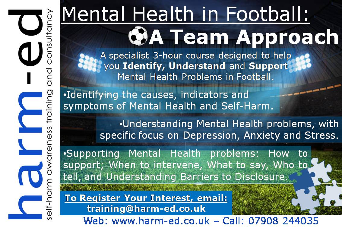 NEW COURSE! As #MentalHealthAwarenessWeek draws to a close, we are delighted to announce details of a BRAND NEW course launching soon! MENTAL HEALTH IN FOOTBALL: A TEAM APPROACH A course to help those working in football Identify, Understand & Support #MentalHealth problems.