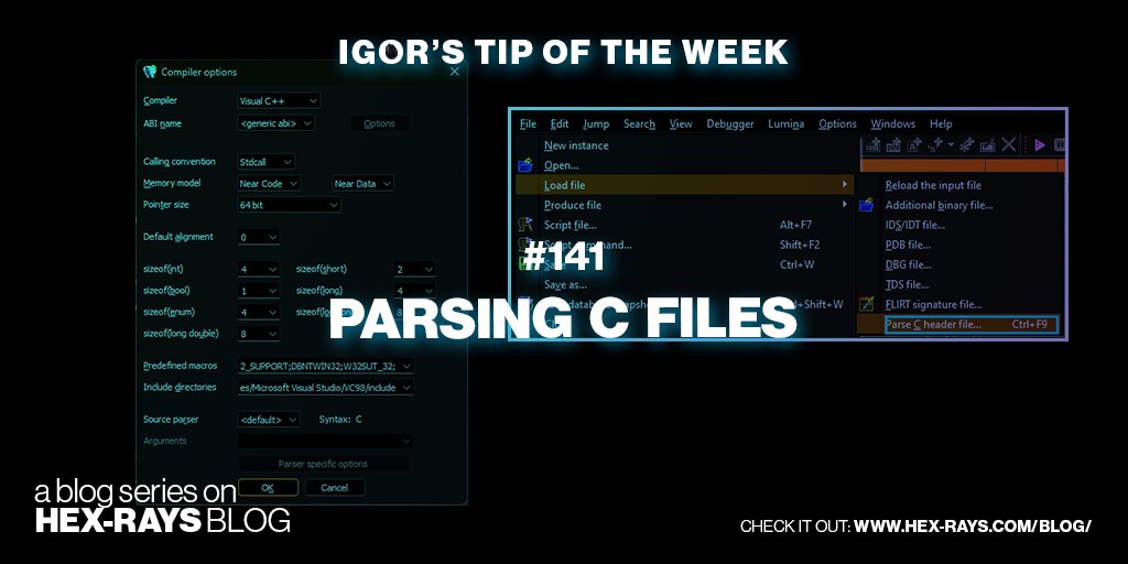 Did you know that IDA has a built-in C parser? See how to use it 🌐 hex-rays.com/blog/igors-tip… #IgorsTipOfTheWeek #IDAtips #IDAProTutorials