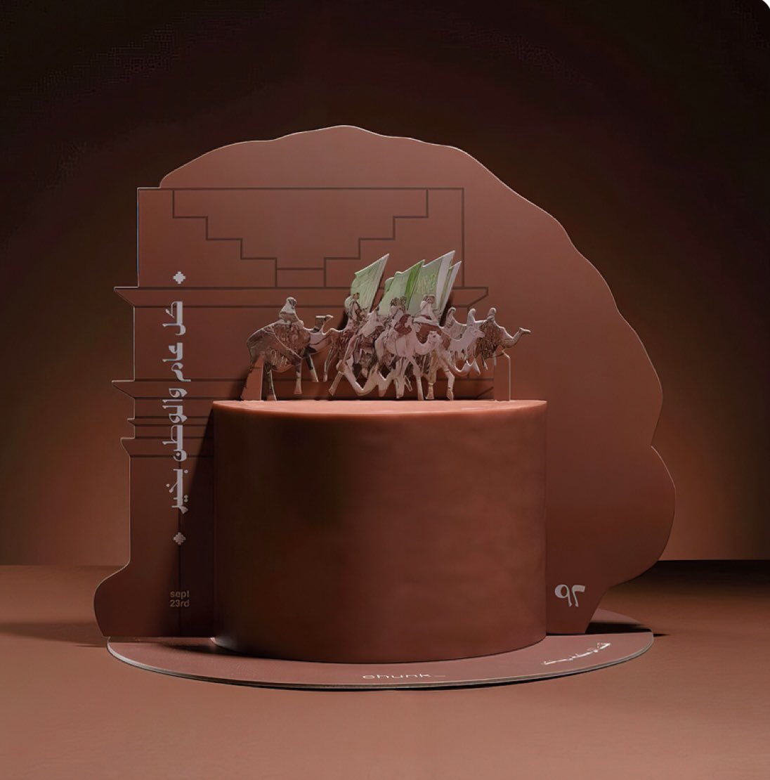 تشنك | Chunk استلهموا تصميم كيكة #اليوم_الوطني من قصر الفريد بالعلا وانعكاسات مسرح المرايا متوفر منها حجمين كبير وصغير للتوزيعات كيكة فانيلا بنكهة الهيل والليمون الأسود😍 سعرها ٢٩٠ ريال