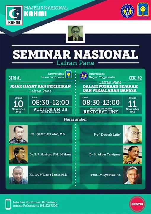 Seminar 1: JEJAK HAYAT & PEMIKIRAN LAFRAN PANE Selasa 10/11/15 jam 08.30-12.00 di Auditorium UII Yogya