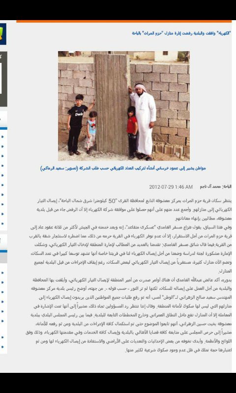 وامر حفضه الله بايصال التيار ومساواتهم بجيرانهم لكن ضلم واحتيال وتغرض البلديه وقف في وجه تلك الاوامر