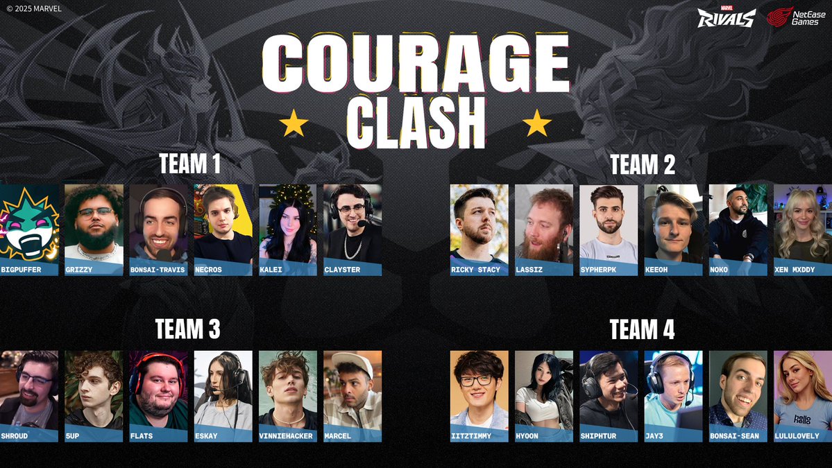 The $100,000 CouRage Clash - in partnership with @MarvelRivals is STACKED! I'll be commentating all the action on Thursday, October 2nd at 12 PM PST! Which team do you think will win? Excited to cast Marvel Rivals for the first time! #MarvelRivals