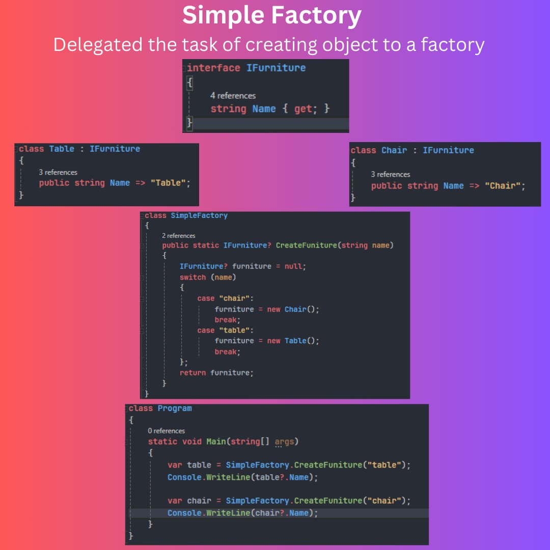 A simple factory to create the objects. #programmer #dotnet #designpatterns