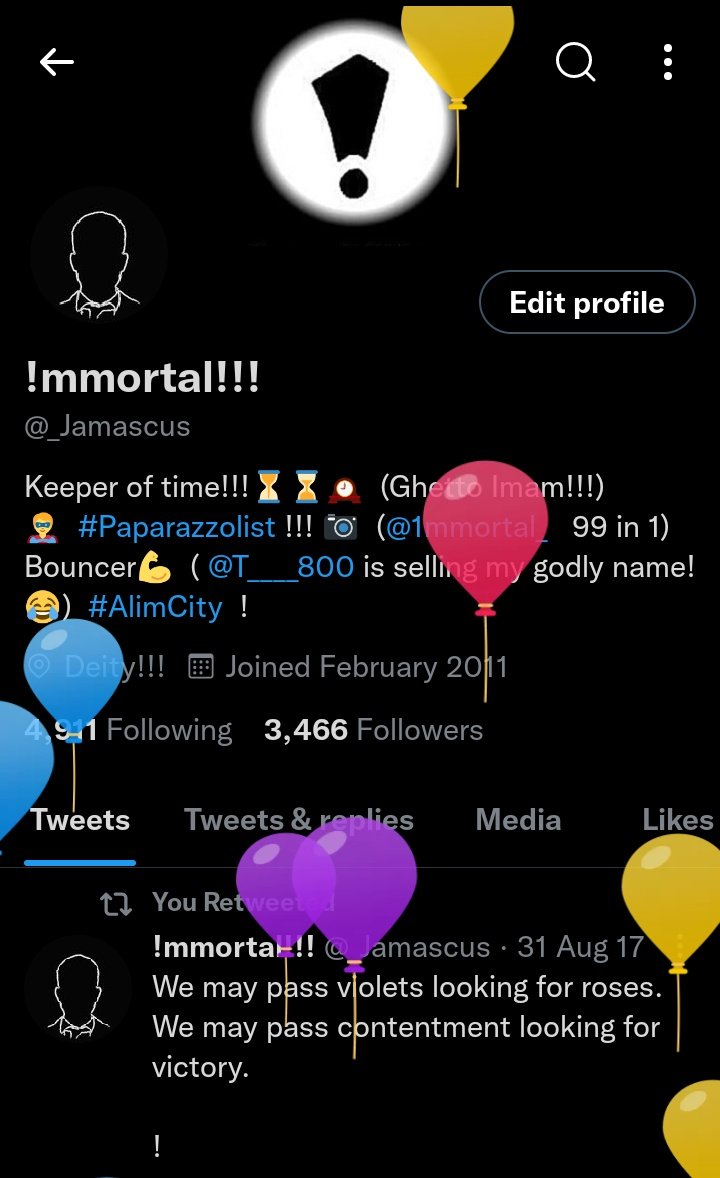 3K Followers 5K Following Keeper of time!!!⏳⌛🕰️ (Ghetto Imam!!!)🦸 #Paparazzolist !!! 📷 CEO: @ImmortalWears #ImmortalWears (@1mmortal_) Bouncer💪 #AlimCity !