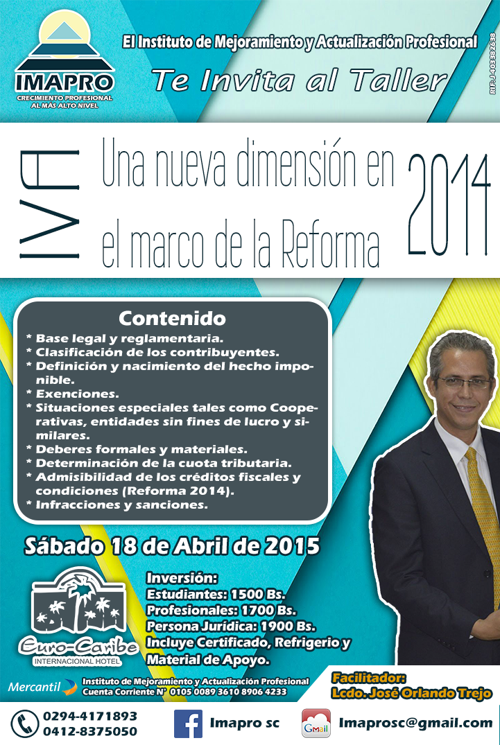 TALLER: IVA. "Una nueva dimensión en el marco de la Reforma 2014". Sábado 18 de abril de 2015. imapro.com.ve