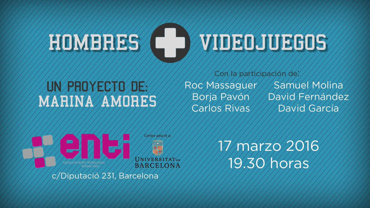 Jueves 17 de marzo a las 19.30 hrs presentación de 'Hombres+Videojuegos' en ENTI (Bcn). Entrada gratuita.
