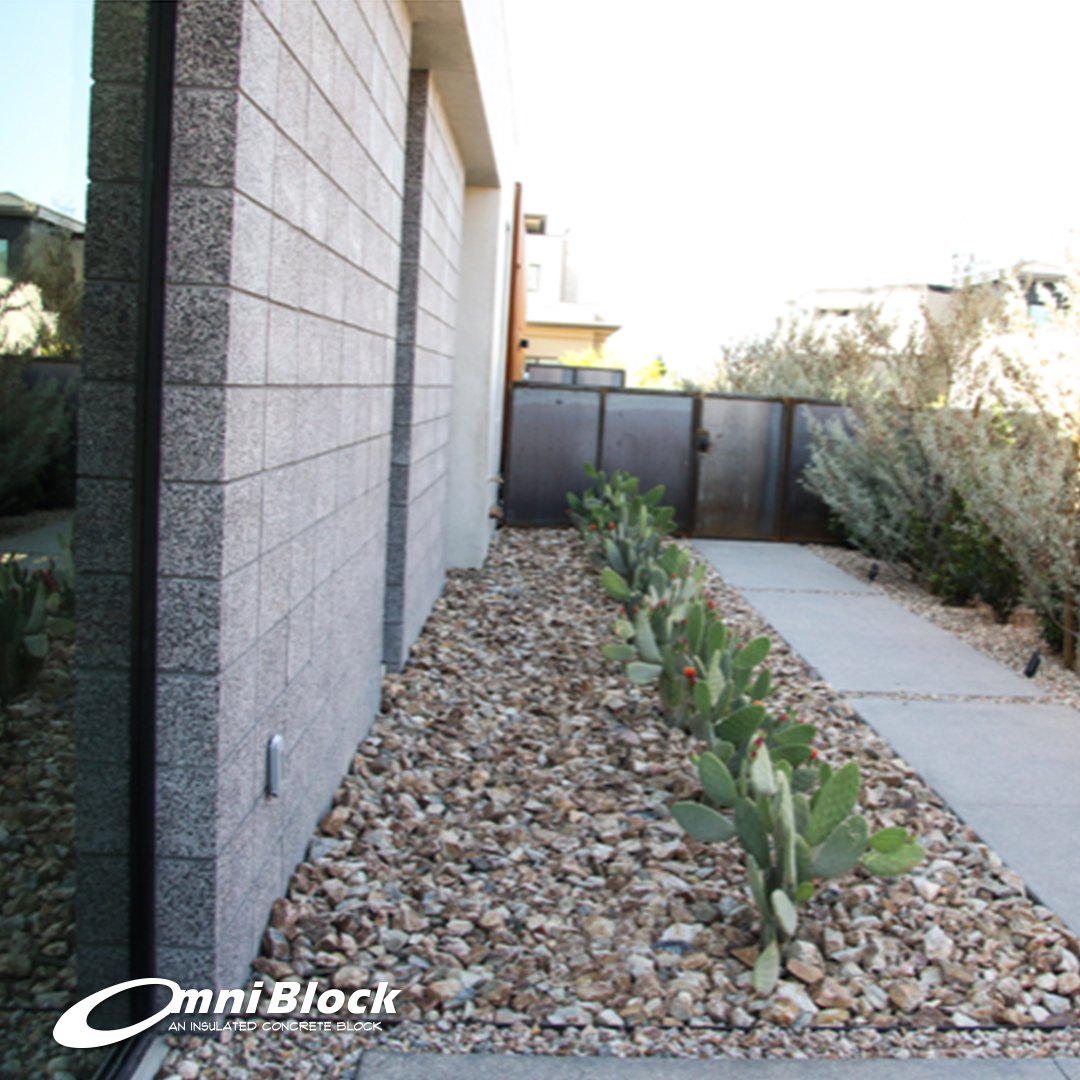 Burnished Omni Block both sides (exterior and interior) and on the exposed edge at all door and window jambs. There is also no visible transition between the foundation and the vertical walls. Frank Lloyd Wright coined this "organic architecture." omniblock.com