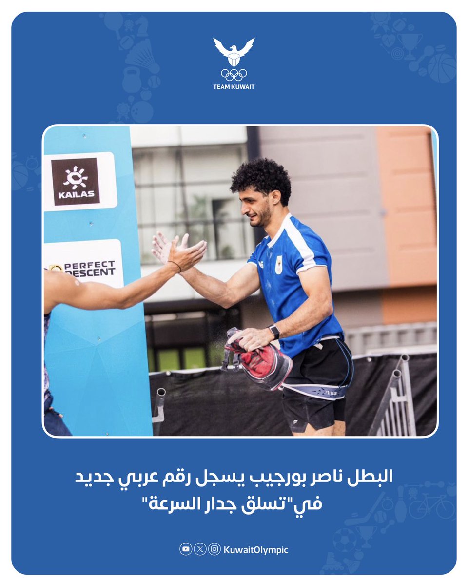 تهنئ اللجنة الأولمبية الكويتية البطل ناصر بو رجيب 🇰🇼 تسجيله رقم عربي جديد بزمن وقدره 5.8 ثانية في رياضة تسلق جدار السرعة و الذي يبلغ ارتفاعه 15م في بطولة كأس العالم للتسلق - دنفر 2025 و المقامة في الولايات المتحدة الأمريكية 🇺🇸،ليصبح بذلك أول لاعب كويتي خليجي عربي يكسر حاجز 6…